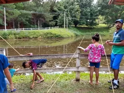 Nossa estrutura é ampla e versátil: salões equipados, piscinas adulto e infantil, campo de futebol, quadra de areia, salão de jogos, lago para pesca esportiva, trilhas e tirolesa. Também contamos com diversas opções de hospedagem, desde chalés confortáveis até alojamentos completos para grandes grupos — tudo preparado para garantir uma experiência única, com conforto e segurança.